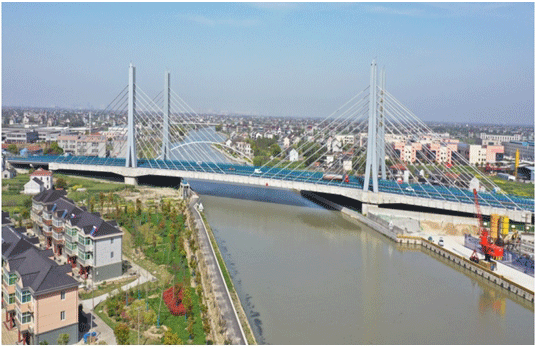 黄姑塘特大桥桥梁全长416.25m,位于嘉兴市平湖市525国道上,主桥采用(75+160+75)m三跨双塔双索面斜拉索桥,桥梁宽36米,建安费约2亿元,该桥是嘉兴市域第一座斜拉索桥,也是嘉兴市第一次采用项目管理(代建制)模式建设的交通项目,建设工期比预定工期提前7个月,交工验收质量优良,获得了地方政府、业主和行业管理部门的一致赞誉。