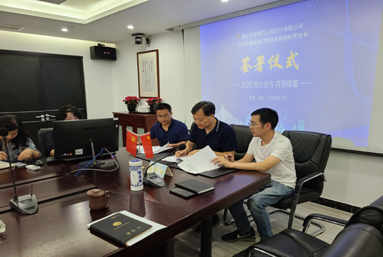 2020年6月5日上午,浙江公司举行了2020年度各分管领导、各部门绩效考核目标责任书签署仪式。浙江公司董事长张南松、总经理江正潭、总工程师蒋云昕、副总经理吴强、各部门负责人及公司全体员工参加了签订仪式。